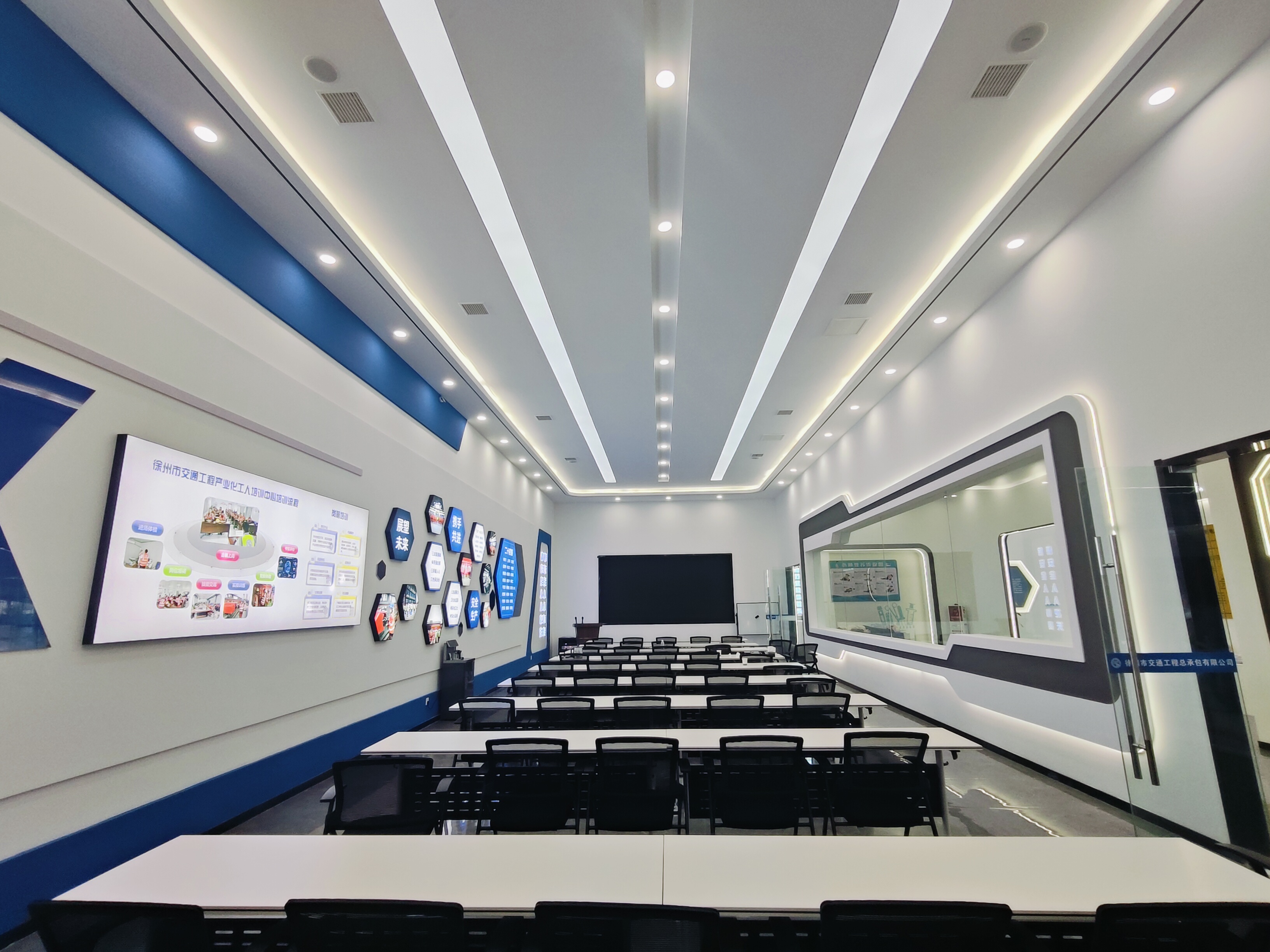 走進(jìn)煥然一新的徐州市交通工程總承包有限公司產(chǎn)業(yè)工人培訓(xùn)中心,明亮的燈光下,工人們正聚精會(huì)神地操作著設(shè)備。墻面展示區(qū)清晰呈現(xiàn)操作規(guī)范,專業(yè)教學(xué)區(qū)配備先進(jìn)工具設(shè)備,導(dǎo)視系統(tǒng)指引著各個(gè)功能分區(qū)——這里已成為集理論教學(xué)、實(shí)操演練、成果展示于一體的現(xiàn)代化培訓(xùn)基地。然而在五個(gè)月以前,這里還只是一個(gè)“空蕩的毛坯空間”改變始于雅努思環(huán)藝建設(shè)科技有限公司的專業(yè)團(tuán)隊(duì)進(jìn)駐,一場空間魔術(shù)自此展開。